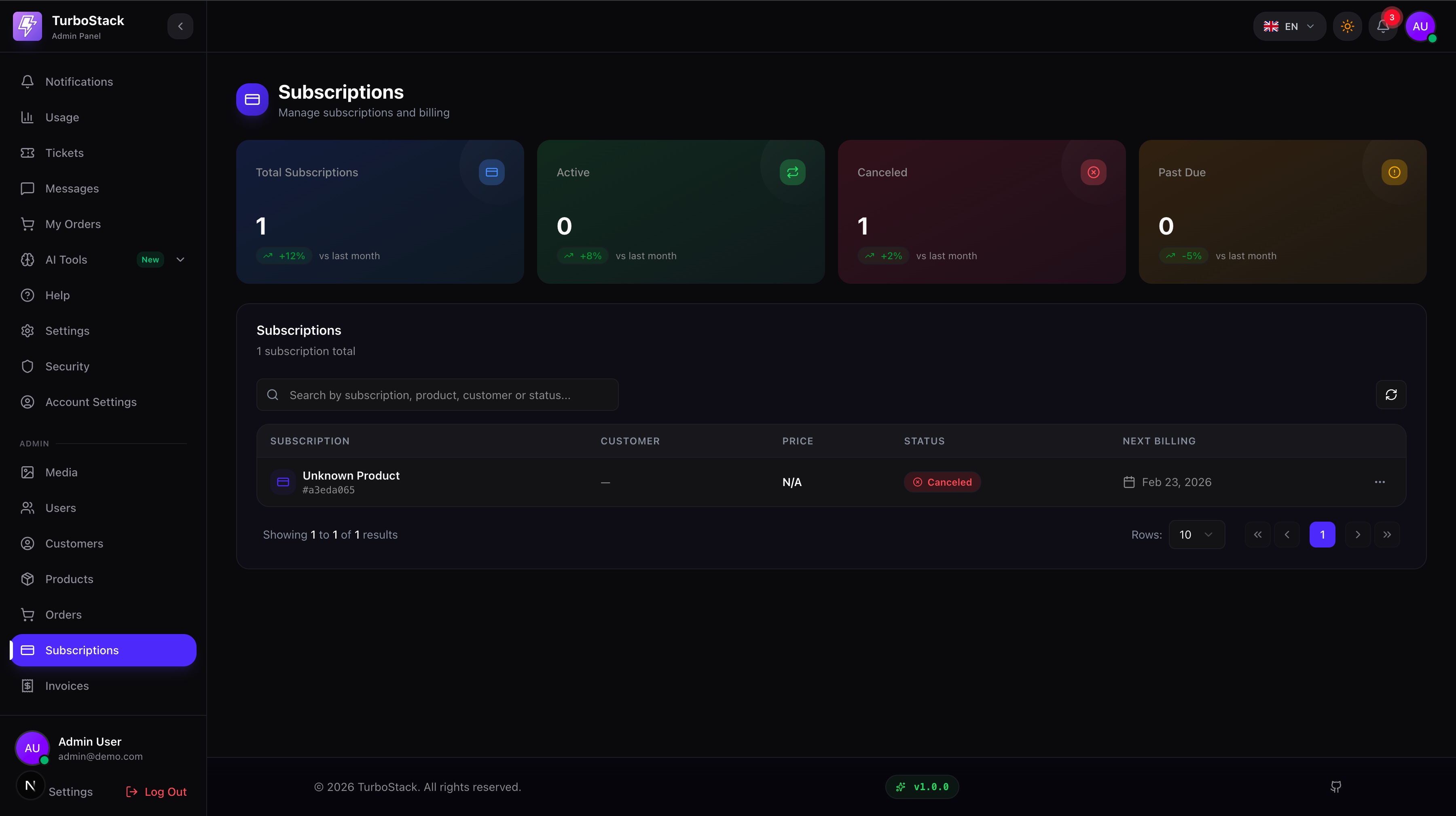 admin@demo.com/demo123Simple Pricing