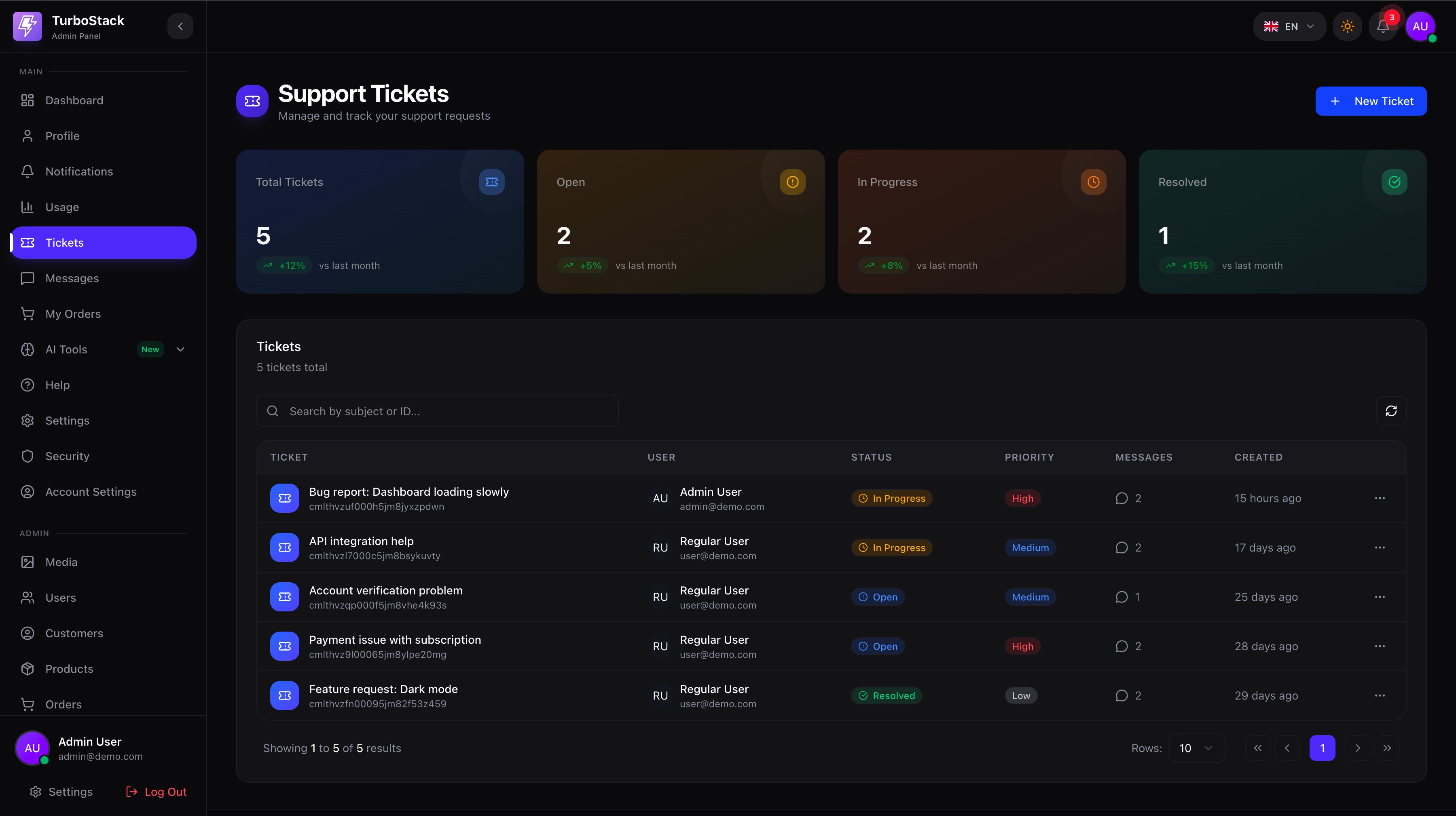 - Admin dashboard + user management